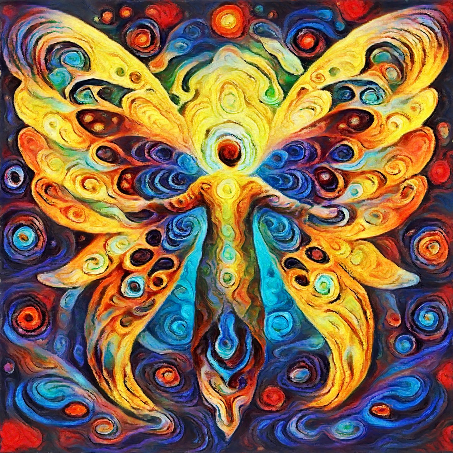 As I contemplate this artwork now, it speaks to both my personal moment of transformation and our collective threshold of change. The butterfly's journey through dissolution to renewal offers a powerful metaphor for our current global transition. Just as the caterpillar must surrender to radical transformation in the chrysalis, we too are being called to move through a period of dissolution and uncertainty. The artwork suggests that within this dissolution lies the potential for profound renewal – both personally and collectively. Like the butterfly, we might emerge transformed in ways we can barely imagine from our current perspective.